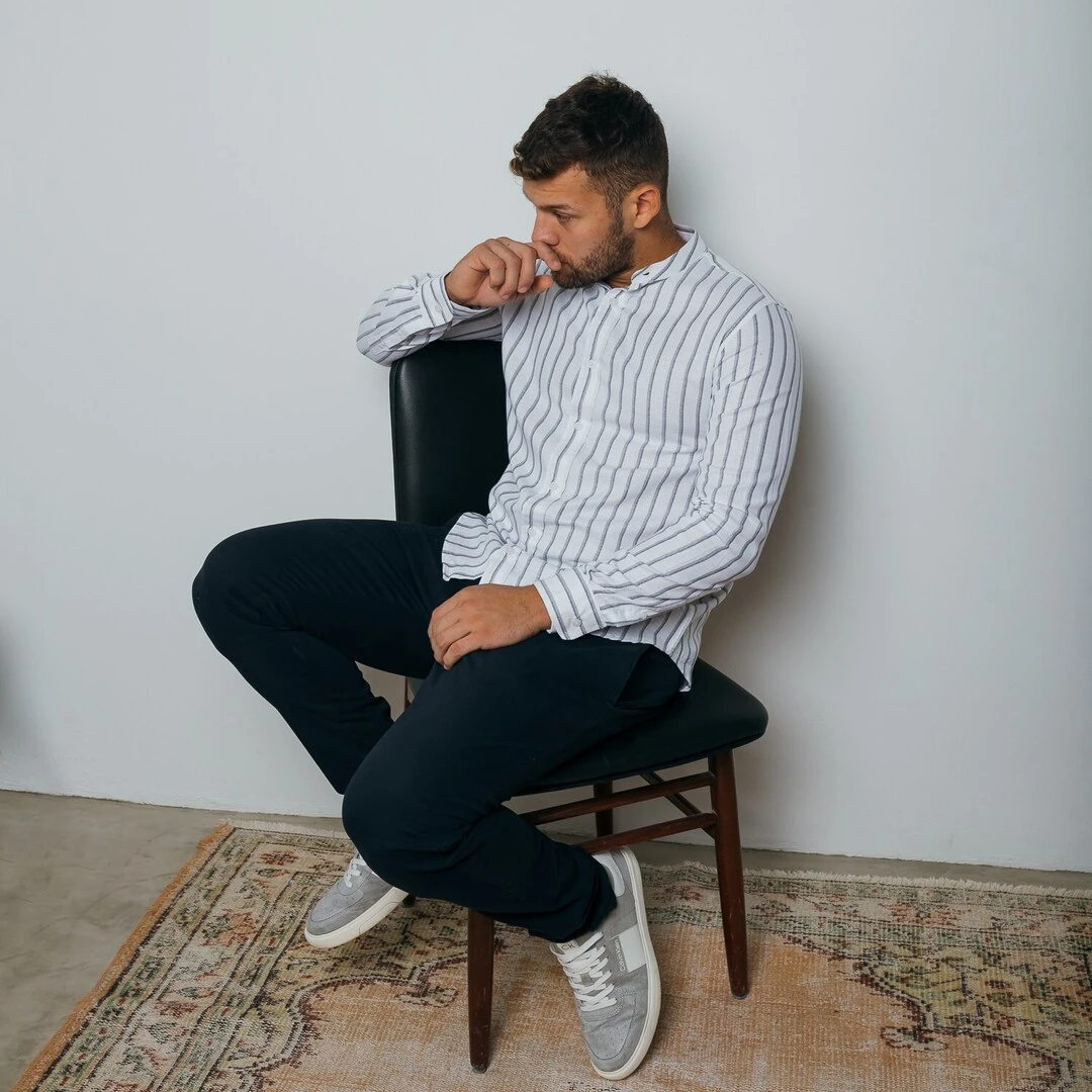 Esta camisa básica de Liberato Basics tiene todo lo que necesitas para un look informal pero elegante. El corte slim le da una silueta ceñida pero sin restricciones, mientras las mangas largas y el cuello mao clásico le dan un toque atemporal. La tela de algodón 100% transpirable lo mantiene cómodo todo el día, y las rayas marrones discretas aportan un toque sofisticado sin esfuerzo. Una prenda imprescindible para tu armario, ya que combina con prácticamente cualquier cosa. Ponte esta camisa básica y estarás listo para pasear, ir de compras o simplemente relajarte con estilo.