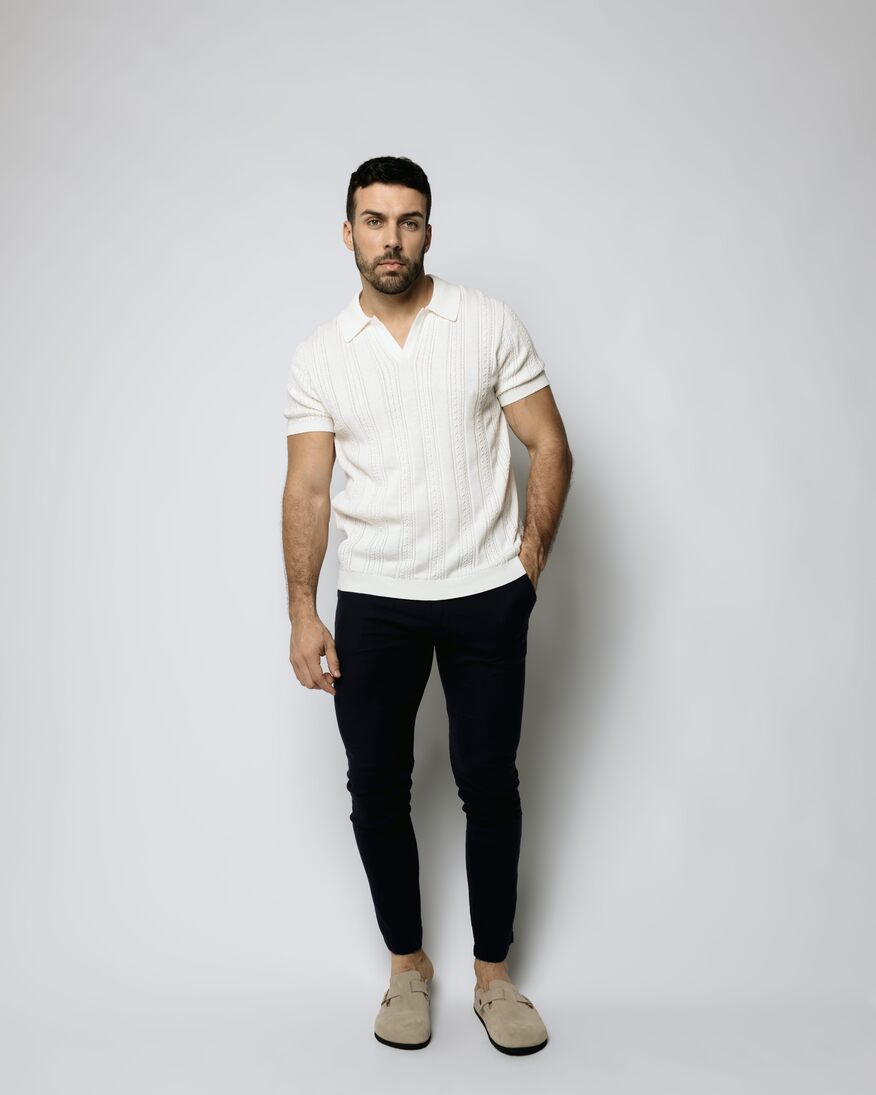 Inspirado en la estética Old Money, este polo en color marfil con cuello clásico y cierre es la prenda ideal para lograr un look elegante sin esfuerzo. Confeccionado en 100% algodón, ofrece suavidad, frescura y un calce impecable. Su diseño sobrio pero sofisticado lo convierte en una excelente opción para salir, ya sea a una cena, un evento o una salida casual con estilo. Un básico refinado que eleva cualquier guardarropa masculino.